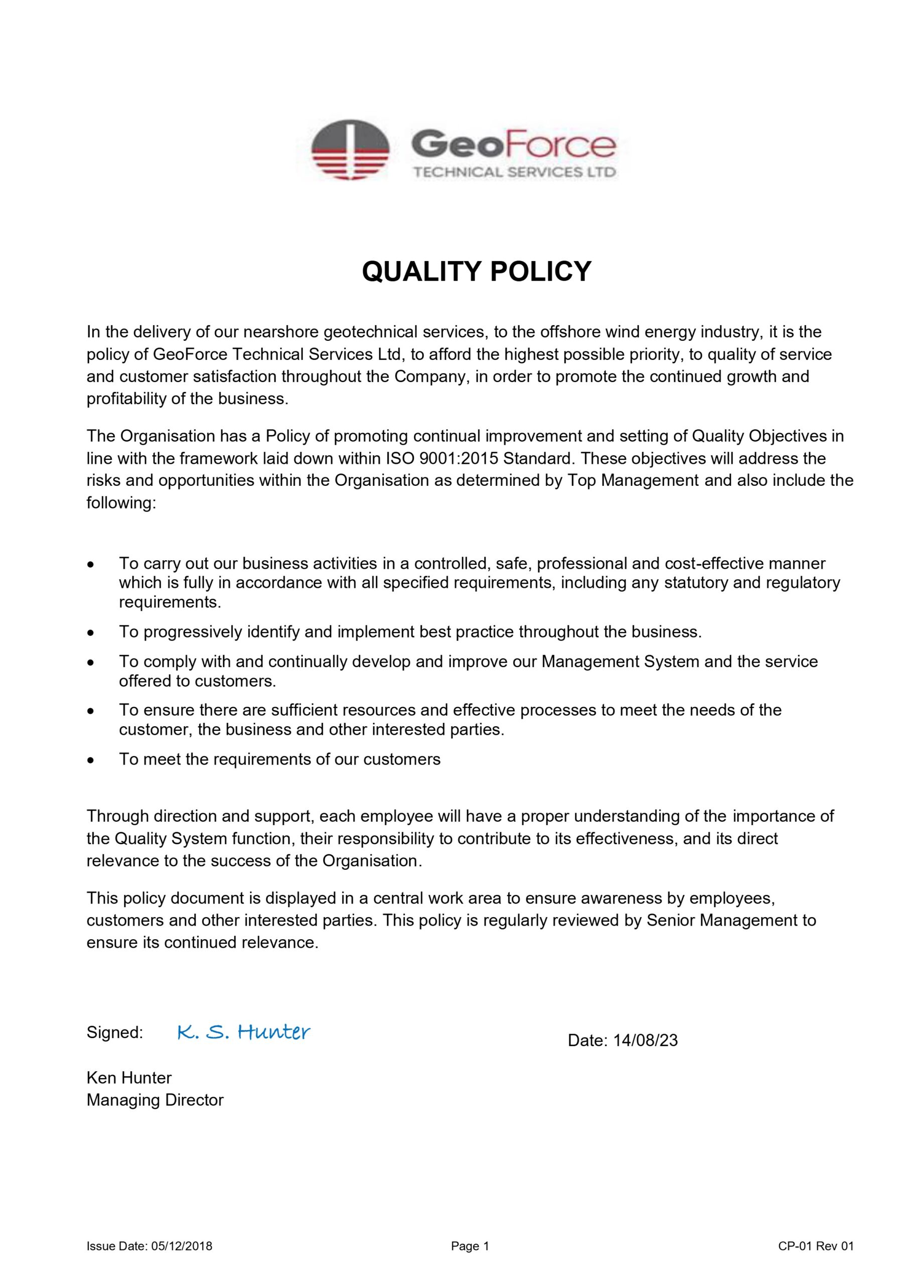 All employees are fully engaged in meeting the requirements of the management system and ensuring its ongoing effectiveness not only in supporting our business goals but in consistently meeting client expectations.