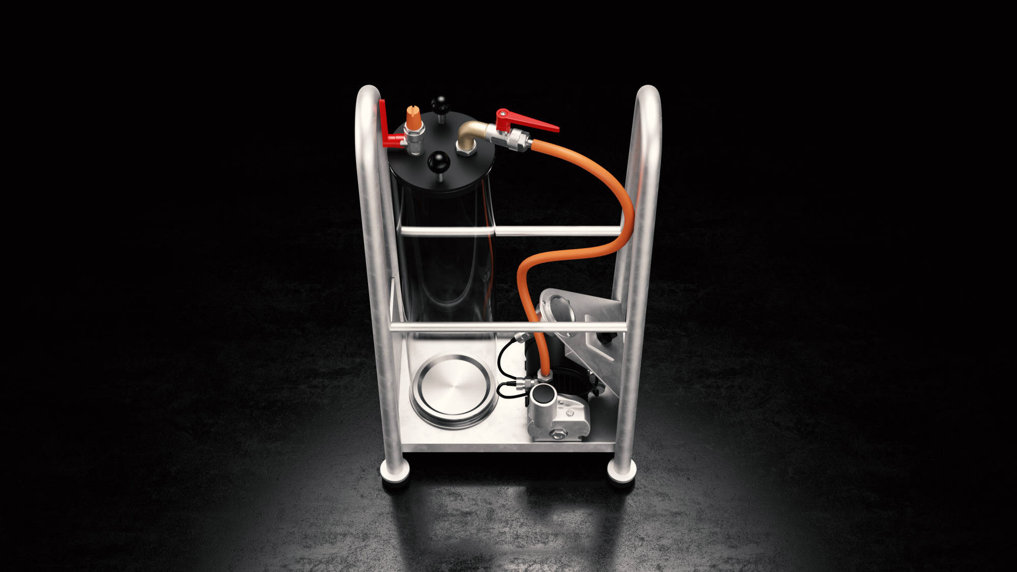 The working principle of the Vacuum Device is to gain a very high vacuum in order to suck any air bubble out of the interior of the cone.